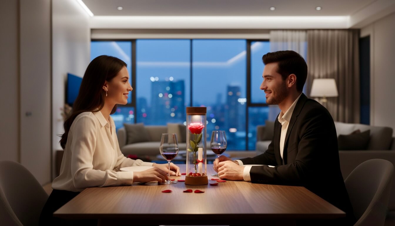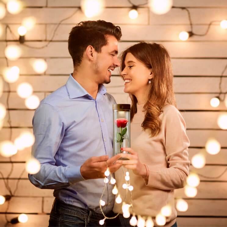 Crea tu momento especial con un regalo diferente: EOS San Valentín, una luz cálida con rosa roja y un pergamino con tu mensaje para esa persona especial.